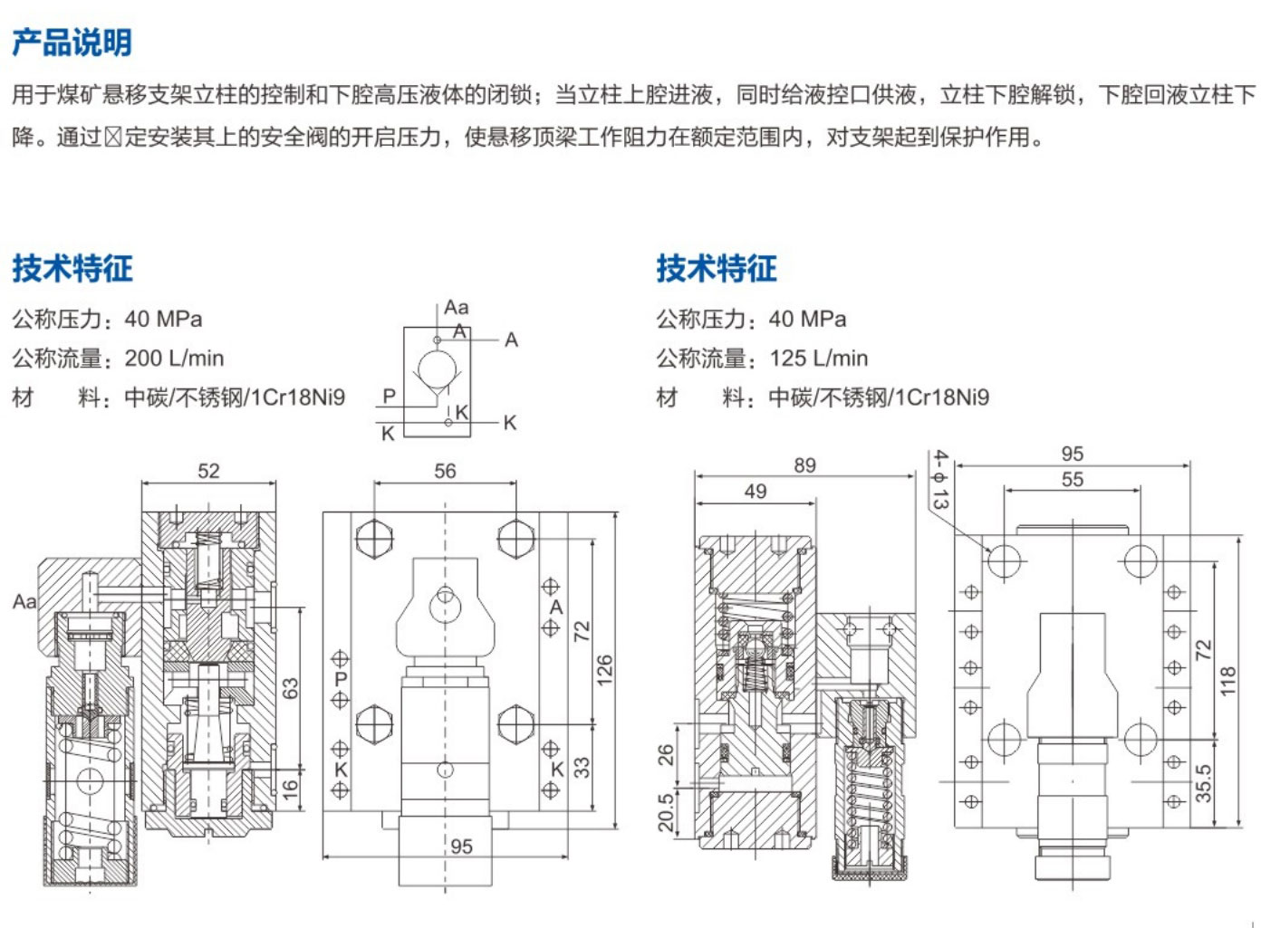 FDYA125/40悬移支架用液控单向阀